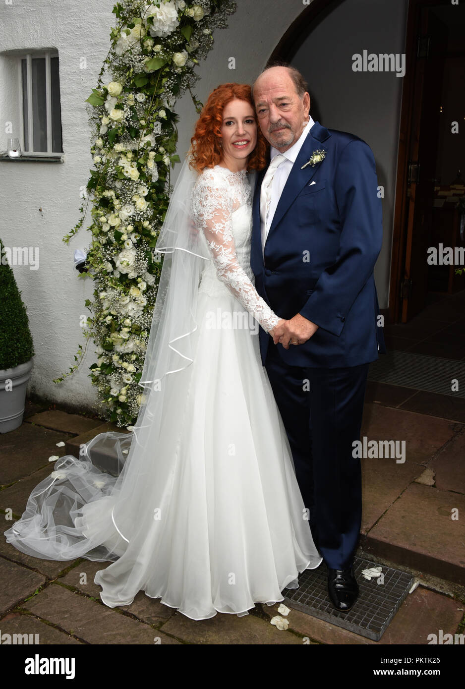 Angela Wiedl and her husband Uwe Erhardt during the wedding of Ralph Siegel and Laura Kaefer at the Thomaskirche Gruenwald on September 15 2018 in. September kurz vor dem Wiesn-Anstich 2018 gaben sich Ralph Siegel 73 und Laura Kaefer 36 in Muenchen das Jawort. BHRT Turns Down Ralph Siegels Eurovision Participation Sponsorship.