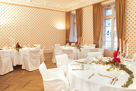 Die Raeume bieten die perfekte Umgebung fuer Ihr besonderes Event. Traumhochzeit im Hause. Die Historische Villa Metzler zeichnet sich durch ein Ensemble aus 3 Salonraeumen aus die zur exklusiven Anmietung zur Verfuegung stehen und gleichzeitig ein Hoechstmass an individuellem Gestaltungsfreiraum bieten.